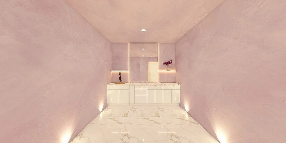 Bathed in pastel limewash hues and grounded by smooth marble floors, this esthetician spa was designed as a sanctuary for stillness and care. Lighted niche walls showcase curated products with a gentle glow, turning everyday essentials into moments of beauty. Every surface and shade invites you to slow down, breathe deeply, and feel well.